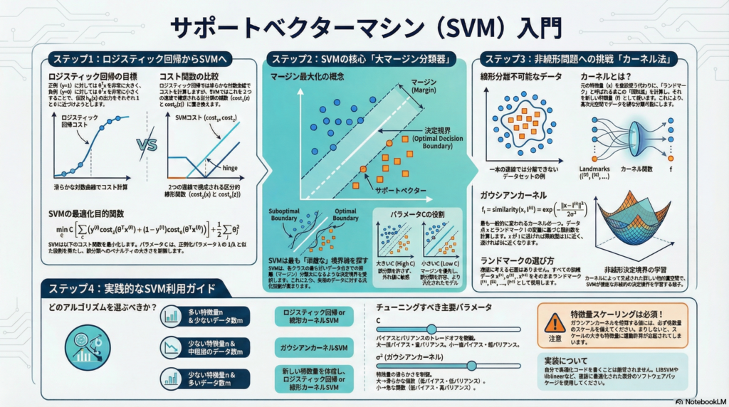 カテゴリー 機械学習 Machine Learning [Week 07/11] Support Vector Machines 投稿者 作成者: ysano 投稿日 2025-12-30 Machine Learning [Week 07/11] Support Vector Machines へのコメントはまだありません ※Coursera Machine Learning Courseの学習メモです Intro Large Margin Classification Kernels SVMs in Practice Review タグ machinelearning ← メモ:医学論文の自動仕分けチャレンジ → Machine Learning [Week 08/11] Unsupervised Learning / Dimensionality Reduction コメントを残す コメントをキャンセルメールアドレスが公開されることはありません。 ※ が付いている欄は必須項目ですコメント ※ 名前 ※ メール ※ サイト 次回のコメントで使用するためブラウザーに自分の名前、メールアドレス、サイトを保存する。 Δ